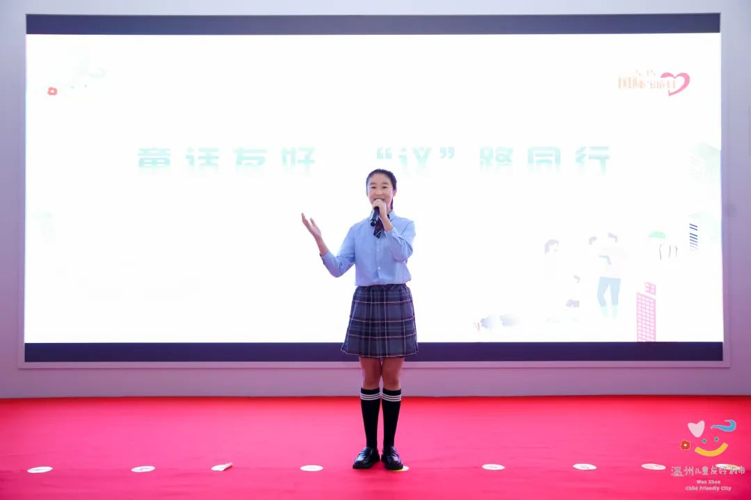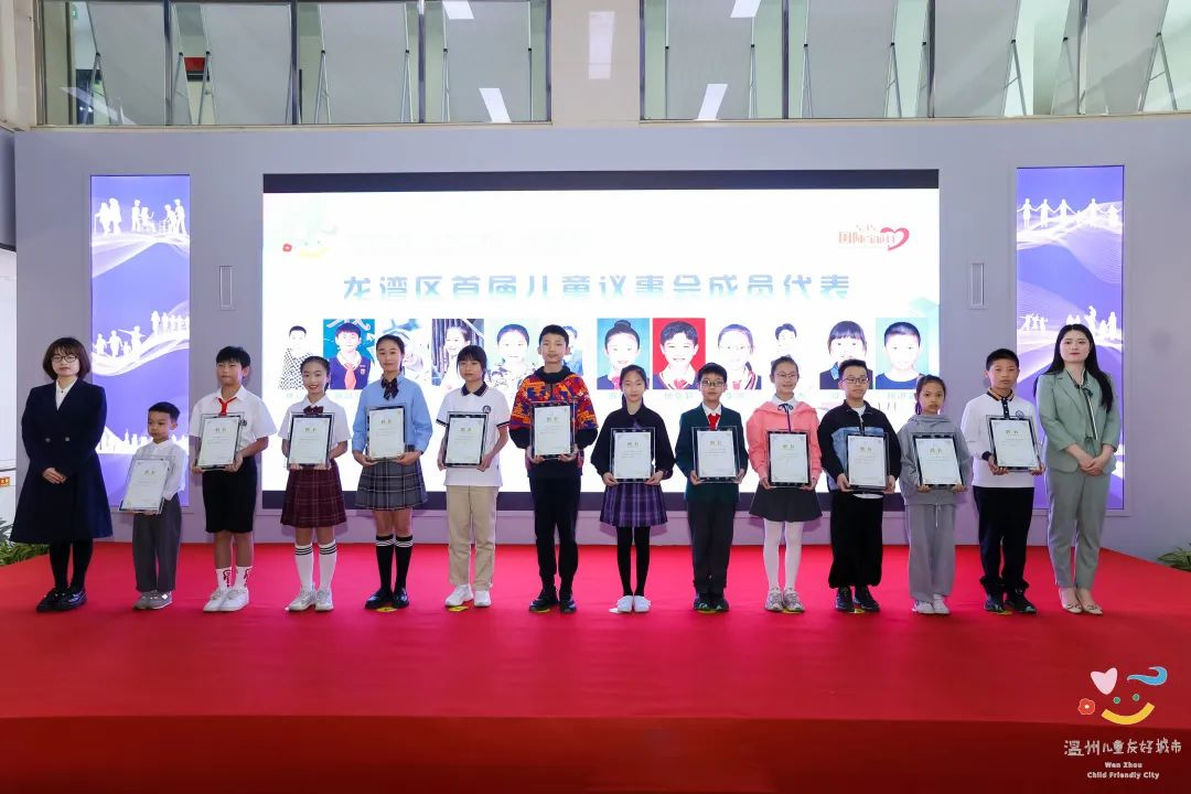 為12位龍灣區(qū)首屆兒童議事會成員代表頒發(fā)聘書。龍灣區(qū)兒童議事會將代表龍灣廣大少年兒童積極發(fā)聲“童”話友好,議路“童”行。兒童議事會成員代表暢談心中的兒童友好城市。