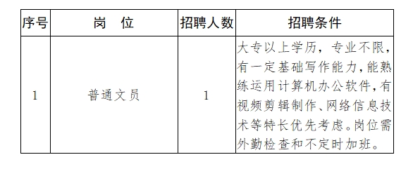 因工作需要,面向社會(huì)公開招聘1名編外人員,現(xiàn)將有關(guān)事項(xiàng)公告如下: